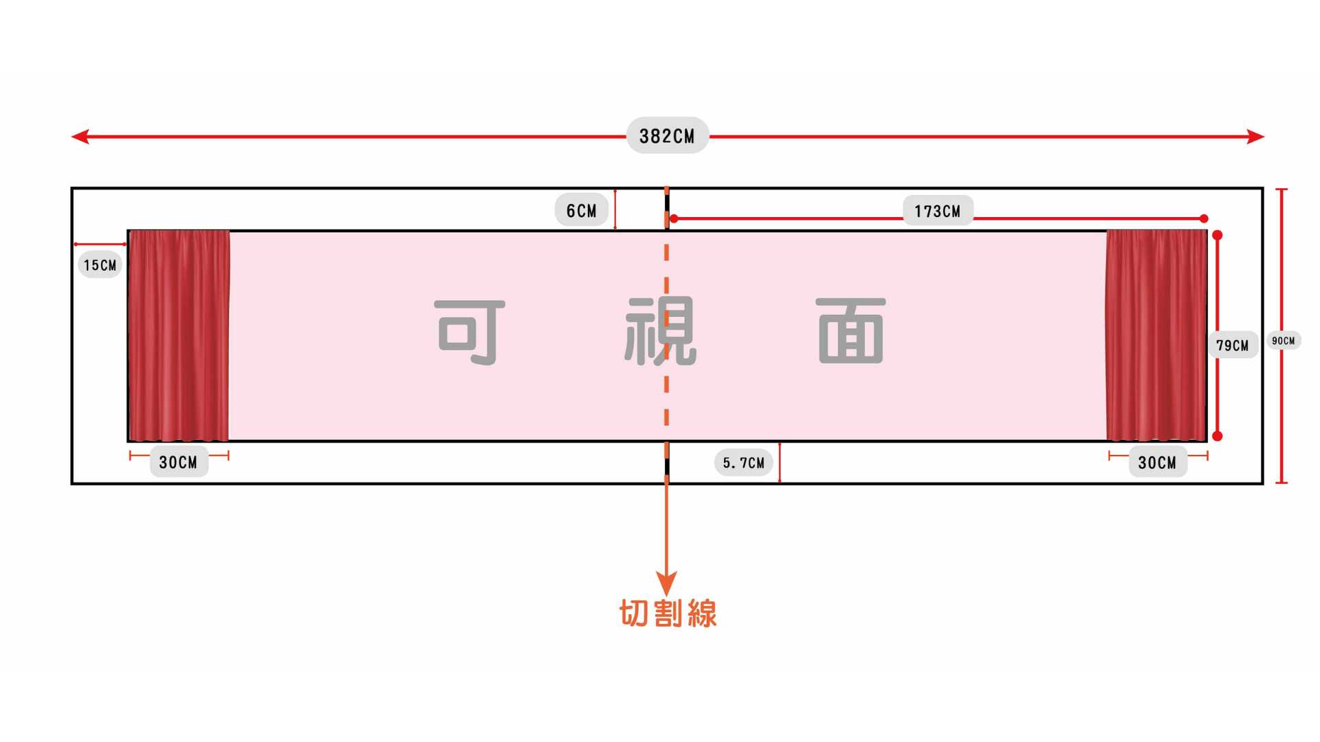 可視面:長346x寬79cm